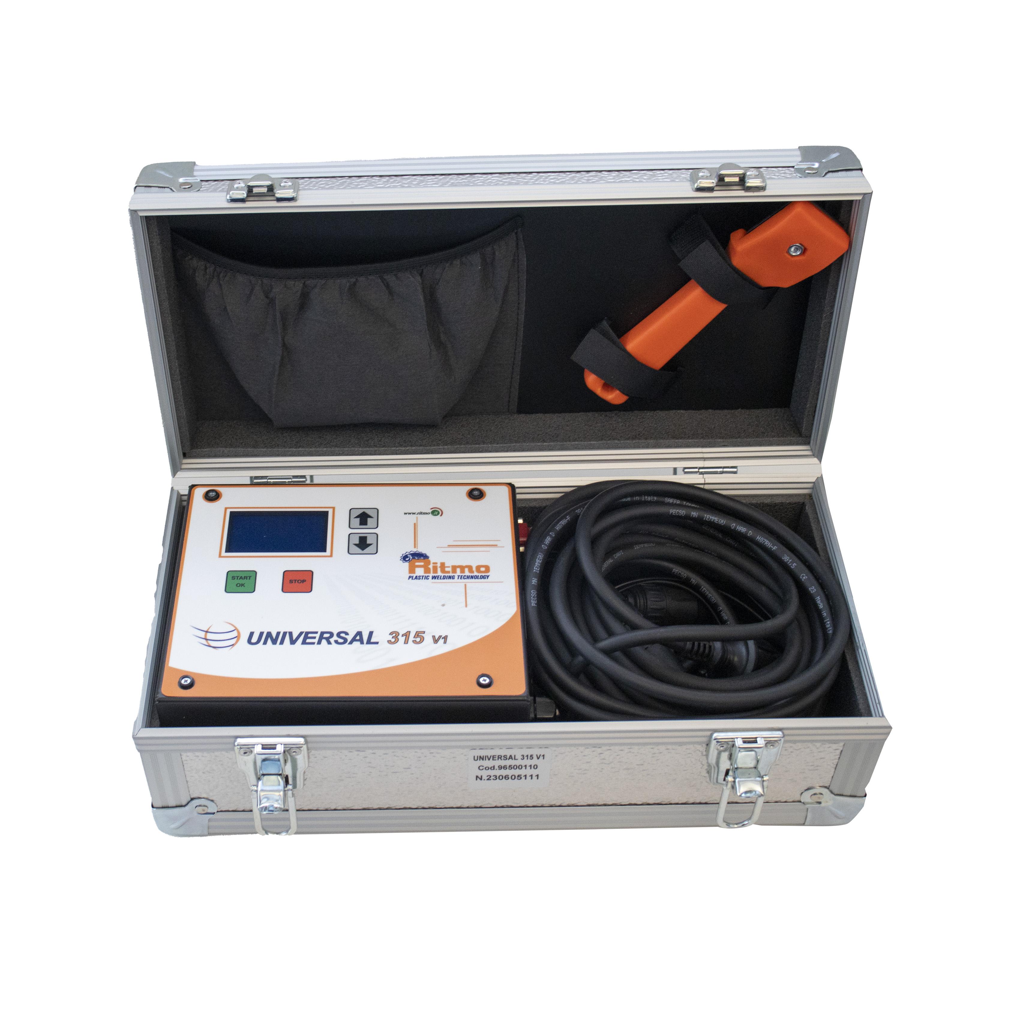 Sähköhitsauskone HDPE-hitsaukseen. Hitsauskone on yhteensopiva Pipelifen kattosadevesijärjestelmän sekä matalapaineisten Vulcathene-Eurofusion, Geberit, Valsir, Coes ja Waviduo järjestelmien kanssa.