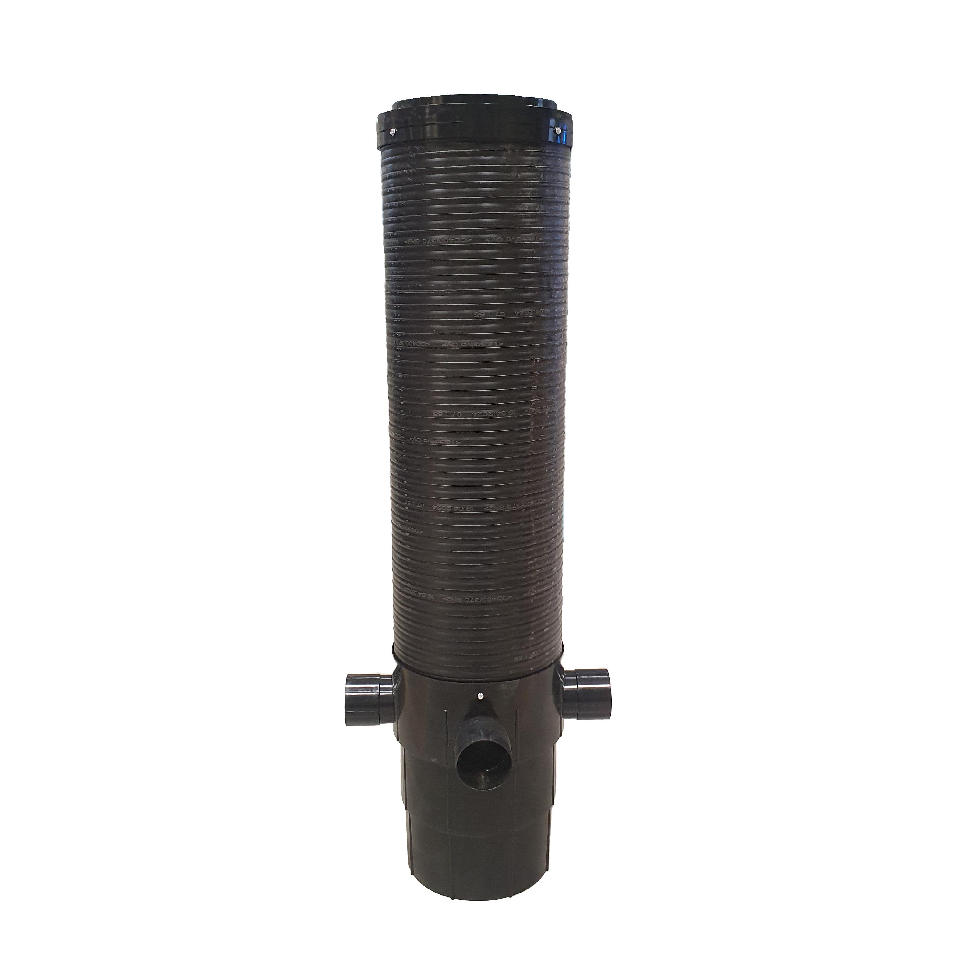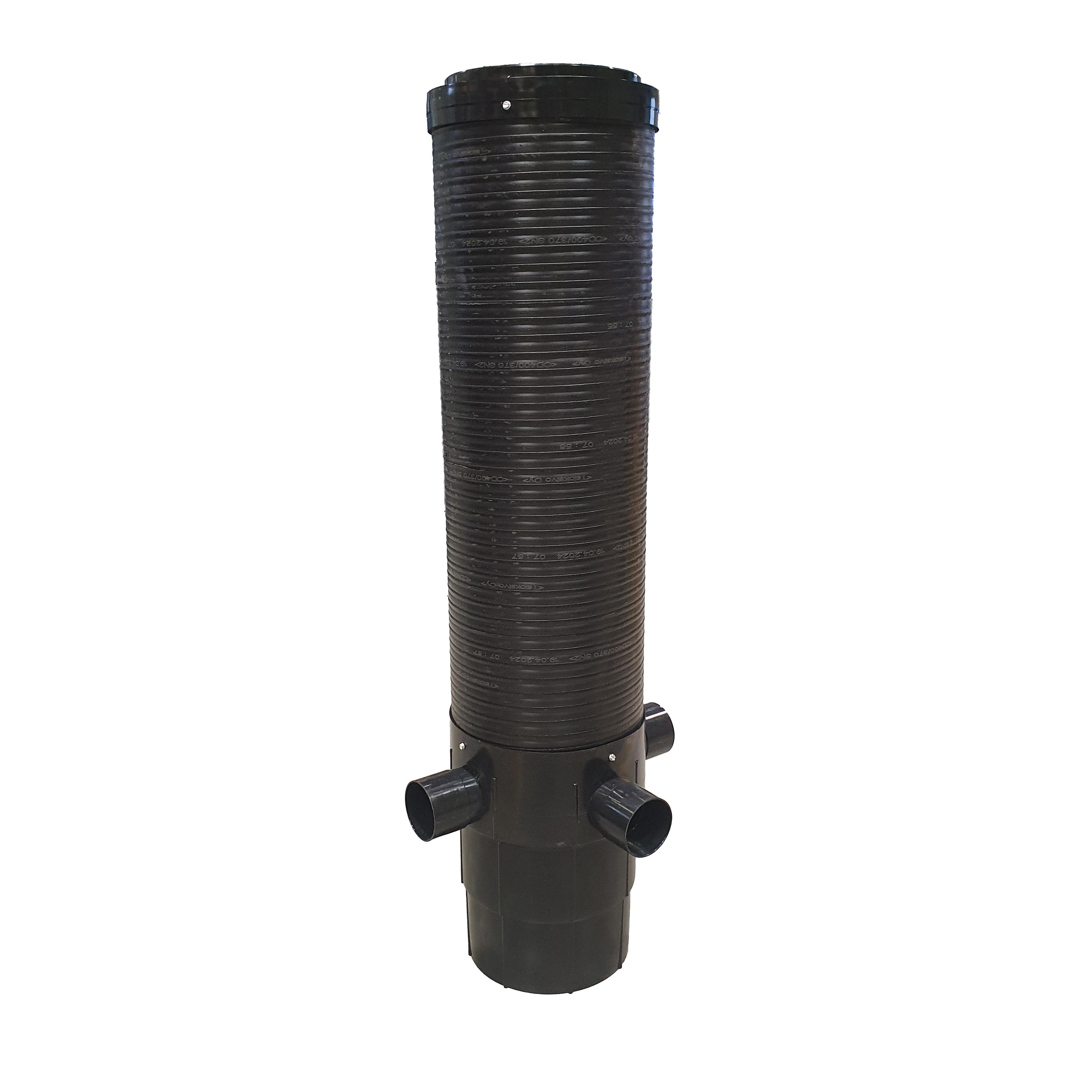 Salaojakaivopaketti 400/315 on asennusvalmis teleskooppinen kaivo salaojituksen tarkastuskaivoksi. Salaojakaivon rungon korkeus 1720 mm sorapesä 360 mm/38l. Kokonaiskorkeus 300 – 2006 mm. Kaivo on helposti lyhennettävissä. Yhteet 3 kpl auki porattavia (95mm rasiaporalla) DN 110 salaojaputkille. Salaojakaivo toimitetaan teleskooppisella 40tn umpikannella.